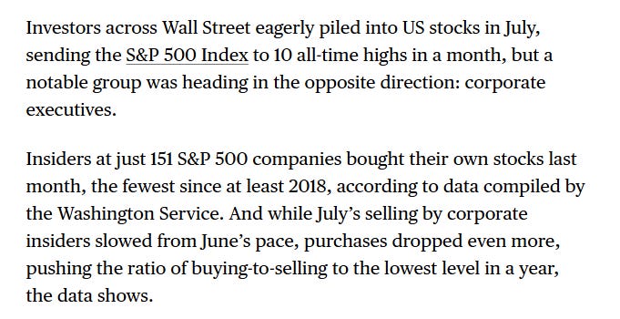 And an August 4th report from Bloomberg stated that insiders at 151 companies brought their own stock.