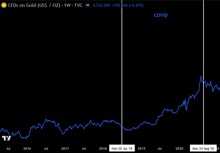 Now what about to the lead up to Covid 2 years prior? Did gold rose?