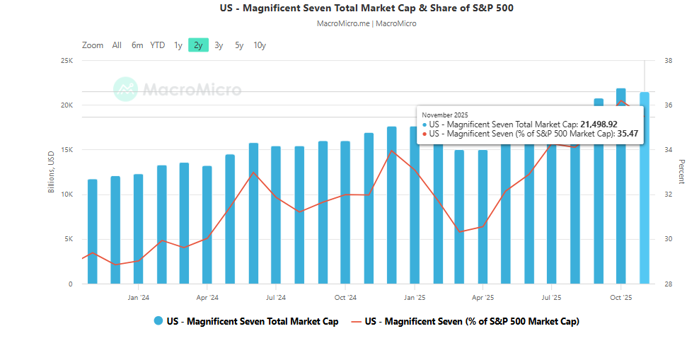 And there is market concentration in these areas: AI, Real Estate (Both Commercial and Residential) and Crypto. Mag 7 accounts for 35% of the S&P 500